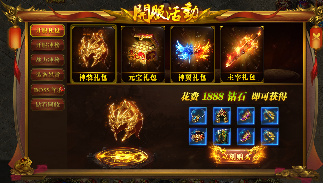 ² 神装礼包: 1888钻石