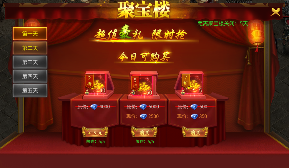 第一天奖励:元宝折扣活动