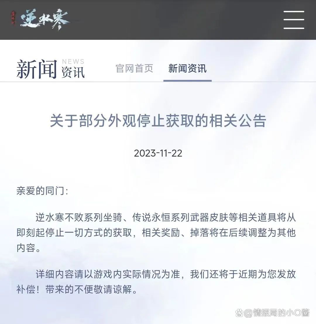 今天我们来看看两则与国服回归相关的消息,第一个消息是《逆水寒》从11月22日起全面停止魔兽高仿坐骑与武器外观的一切获取方式。